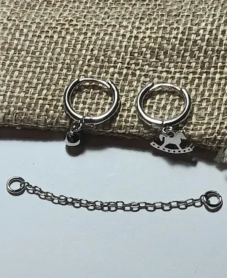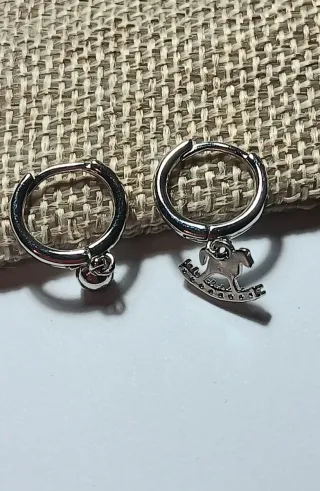 Pendientes de aro desmontables en plata de ley. Uefes llevarlos con l academia en la misma aoreja o como.par de pendientes normales Nuevos a estrenar - Diseño moderno y versátil. - Cierre seguro y cómodo. - Incluye charm de caballito balancín y charm de bolita.
