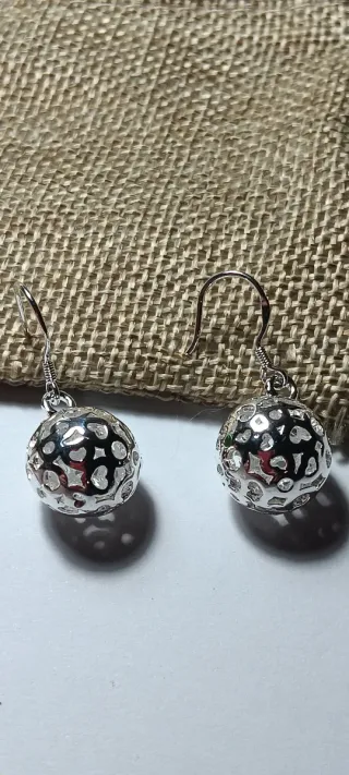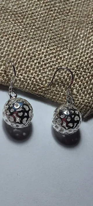 Elegantes pendientes colgantes con un diseño de esfera calada con corazones. Nuevos Plata - Diseño de esfera calada. - Detalle de corazones. - Cierre de anzuelo.