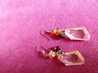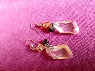 Elegantes pendientes con un diseño único. - Colgante de cristal facetado. - Detalle de cuentas de cristal. - Cierre de anzuelo plateado.