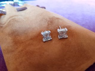 Elegantes pendientes con un diseño moderno y brillante. - Diseño cuadrado con circonitas. - Cierre de presión.