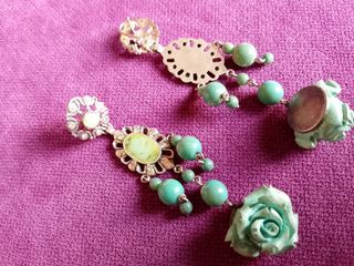 Elegantes pendientes con un diseño único. - Detalle de flor en la parte inferior. - Cuentas en tono turquesa. - Engarce plateado con piedra central.
