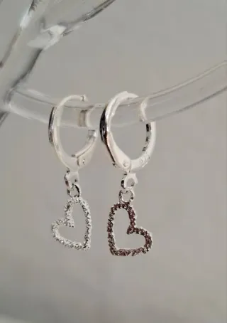 Preciosos aros con colgantes de corazón. - Diseño de corazón calado. - Acabado brillante. -plata S925. Envio rapido