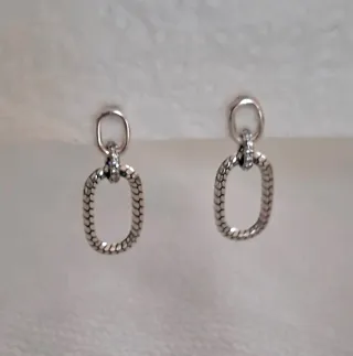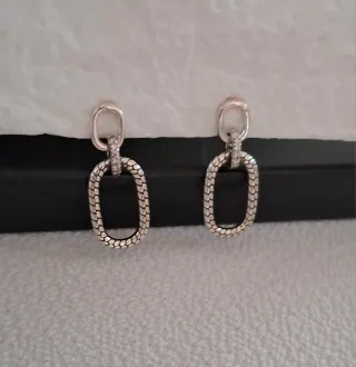 Elegantes pendientes de la marca Pandora, con un diseño tipo link y adornados con pequeñas circonitas que aportan brillo. - Diseño tipo eslabón. - Acabado en plata. - Detalle de circonitas brillantes. Lo envío con su embalaje original.