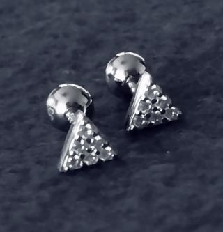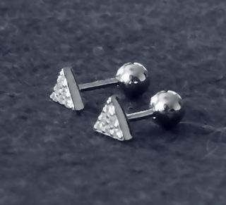 Pendientes cortos con cierre de bola de plata 925, rodio y circonitas. 4'3 mm lado triangulo. UNISEX
