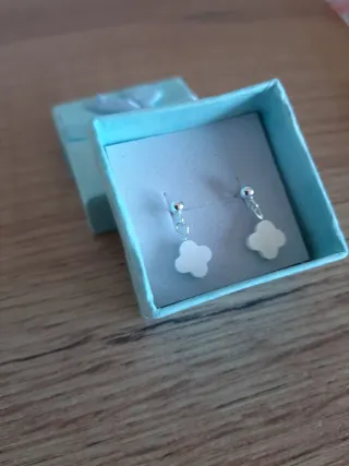 Elegantes pendientes de plata 925 con un diseño de trébol de nacar natural y bola de 3 mm nuevos - Plata 100%. - Diseño de trébol. - Cierre de presión.