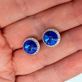 Los pendientes son elegantes. Pequeños pero vistosos por la corona de alrededor. Centro azul intenso. Varillas y cierres de plata 925 (foto con lupa). Se entrega en la cajita de metacrilato para su protección en el envío y la bolsita de tul. Mira más opciones de compra en mi perfil y así aprovecha el envío.
