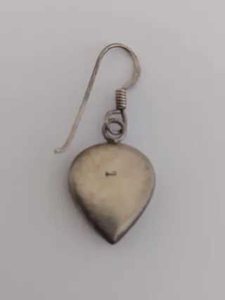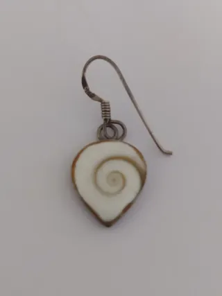 Pendiente Ojo de Shiva fabricado en Plata de 925 milésimas. Mide aproximadamente 1.5 centímetros de largo sin contar el enganche y su peso es de 1.23 gramos. El pendiente permanece en buen estado general con pequeños signos de desgaste. Las imágenes corresponden exactamente al artículo anunciado.