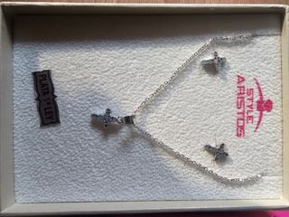Nuevos a estrenar,bañados en plata,medida del collar 37xm hasta 40cm medida del pendiente en fotos,es 1 sólo pendiente,solo hago envios