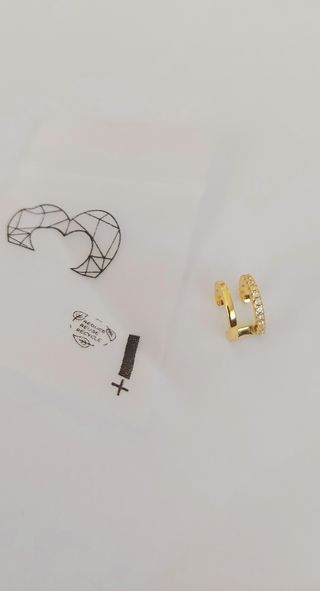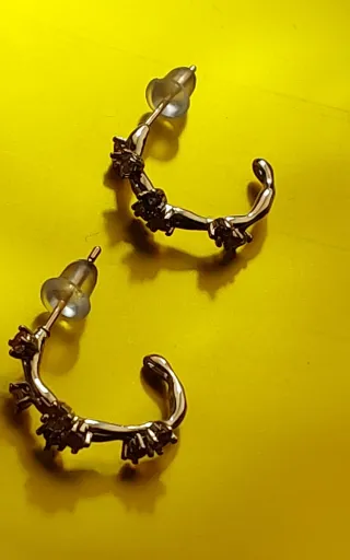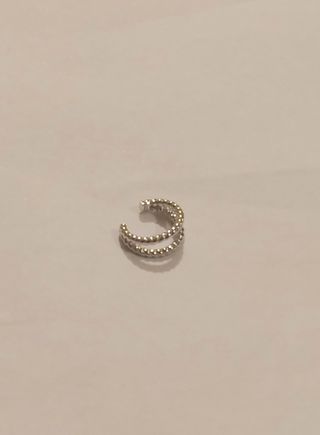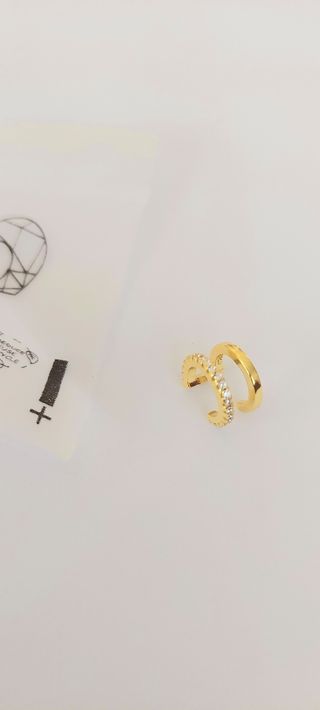 Formado por dos tiras de p,ata retorcida en forma de cordon.Cólocalo en el cartílago sin necesidad de tener agujero, nuevo a estrenar, solo envio