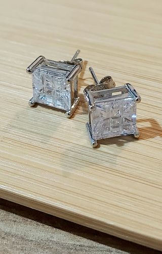 forma cuadrada, con circonitas. Nuevos. Comprado en joyería local.
