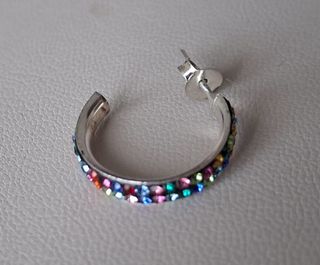 Arete de plata con circonitas de colores. - Diseño de aro. - Incluye una pieza.