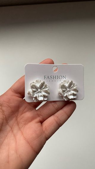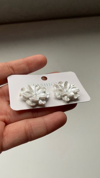 Pendientes con diseño de flor en color blanco y detalles plateados.