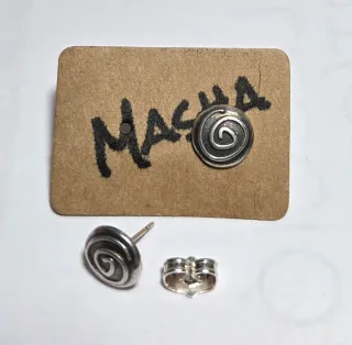 Pendientes Eguzkilore. Miden 12 mm de diámetro. Cierre a presión. Son de zamak con baño de plata pura. Nuevos, de la colección Masha Bisutería Artesanal