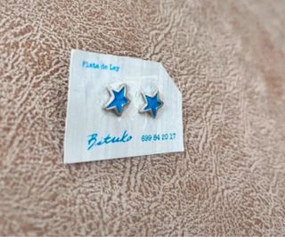 Preciosos pendientes con forma de estrella en plata de ley. - Diseño de estrella. - Color azul y plateado. #pendientes #platadeley