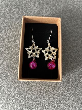 Pendientes con diseño de estrella y detalle colgante. - Diseño de estrella. - Colgante esférico con brillo, gancho plata