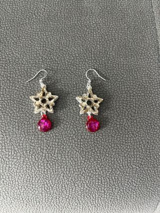 Pendientes con diseño de estrellas, combinando plata y un toque rosa. - Diseño de dos estrellas por pendiente. - Acabado plateado brillante en la estrella inferior. - Detalle de estrella rosa en la parte superior.