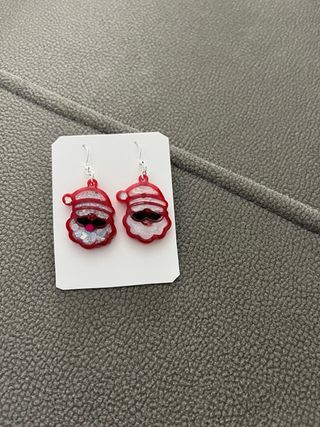 Adorables pendientes con forma de Papá Noel, perfectos para la temporada navideña. Tienen un diseño llamativo y festivo. - Detalles en brillo y color fucsia. - Cierre de anzuelo plateado.