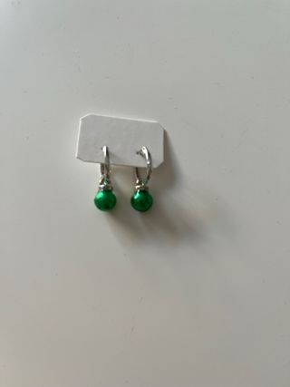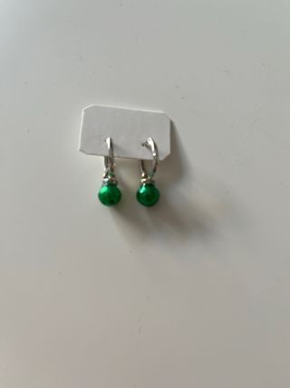 Elegantes pendientes con un diseño llamativo. - Cuentan con una esfera verde brillante. - Enganches plateados tipo aro.