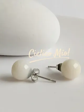 Elegantes pendientes de acero con un diseño circular. - Acabado en plata. - Detalle en tono nácar
