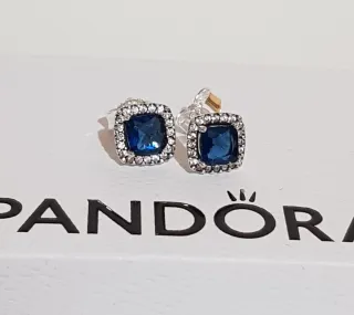 Pendientes de botón en plata. Con circonita cuadrada azul. Con sellos grabados de autenticidad S925. 💝 ¡Con su cajita incluida! #pendientes #pandora #joyas #regalos #plata #circonita #azul #S925 #joya #complementos #zarcillos #cuadrado