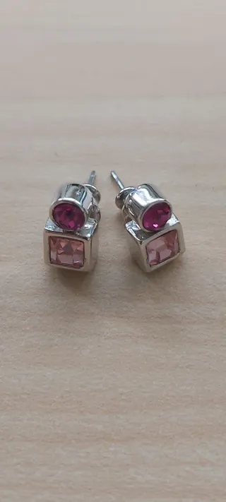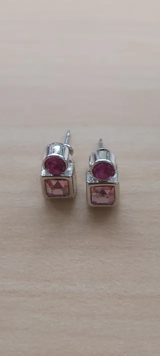 Elegantes pendientes de acero con un diseño moderno y cierre de rosca. Se encuentran en muy buen estado. - Diseño de doble piedra. - Cierre seguro de rosca.