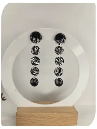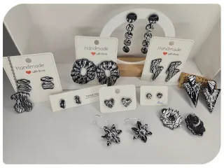 PREGUNTAR ANTES DE COMPRAR!! . . Conjunto de pendientes hechos a mano con arcilla polimérica, cada par con un diseño distintivo. - Diseños variados disponibles. - Acabado texturizado en negro y plateado.