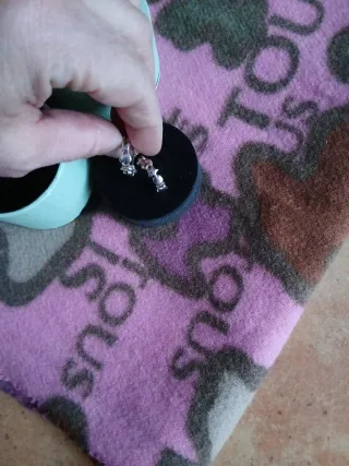 Pendientes de plata con una pequeña piedra de turmalina azul. Nuevo, nunca se ha usado. La piedra mide 5 mm. Si quieres, echa un vistazo a los otros productos. Si te gusta algo más, puedes hacer un lote y te haré un descuento.