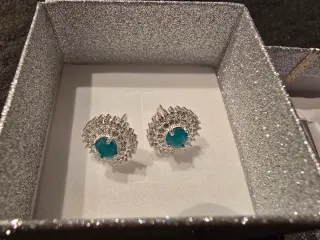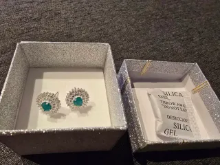 Elegantes pendientes con baño de plata y una Esmeralda de imitación y circonitas Nuevos - Resistente al agua no da alergia - Diseño sofisticado acero con baño de plata. - Piedra central de color verde intenso.