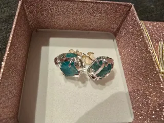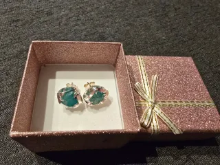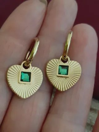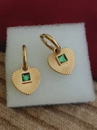 Elegantes pendientes con un diseño delicado y un toque de color. Para uso diario o cualquier ocasión Nuevos con caja de regalo 🎁 - Baño oro inoxidable resistente al agua - Piedra central de esmeralda de imitacion - Detalle de pequeñas circonitas.
