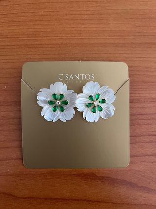 Pendientes de plata 925 con dos flores de concha de nácar y esmeralda en plata
