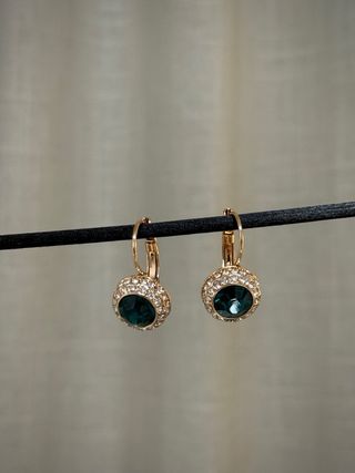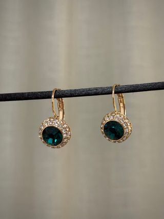 Pendientes redondos con un diseño elegante y cristales de color esmeralda. - Cierre de palanca. - Detalles en cristales transparentes.