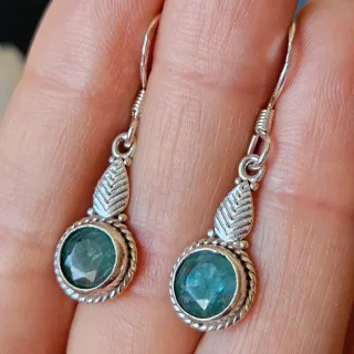 Elegantes pendientes de plata con un diseño detallado y adornados con piedras naturales raíz de rubies esmeraldas zafiros - Diseño intrincado con pequeñas marquesitas