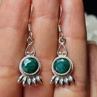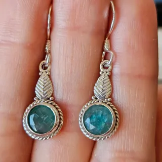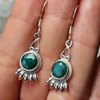 Elegantes pendientes con esmeraldas naturales y montura de plata. - Piedras preciosas de color verde intenso. - Diseño clásico y atemporal. - Cierre seguro para llevarlos cómodamente.