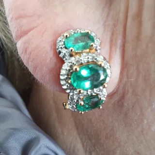 Pendientes Plata con Esmeraldas, oro y brillantes