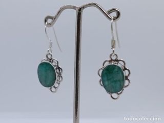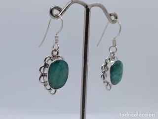 Elegantes pendientes de plata con piedras de esmeralda. ref. 628478519 - MEDIDAS: 43 MM DE ALTO - Diseño con forma ovalada. - Cierre de anzuelo.