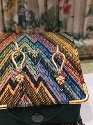 Pendientes Oro 18k Zafiro, Rubí y Esmeralda