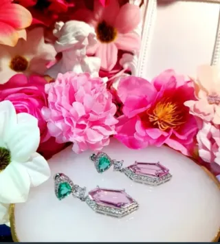Pendientes de lujo con esmeraldas y zafiros rosas