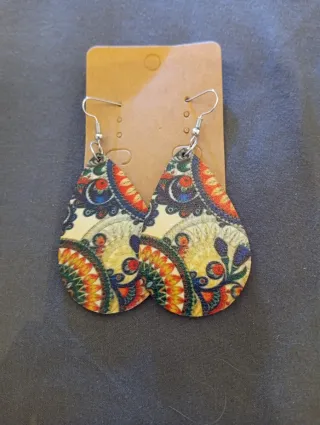 Pendientes con un diseño vibrante y llamativo, perfectos para añadir un toque de estilo. - Diseño de lágrima. - Estampado étnico detallado. - Cierre de anzuelo.