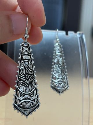 (Hago pack de accesorios con descuento) Pendiente único plateado tipo étnico. Es largo, por lo que viene uno. Ideal para un recogido de pelo a un lado y lucir el pendiente en el otro, o poner de pareja uno pequeño.