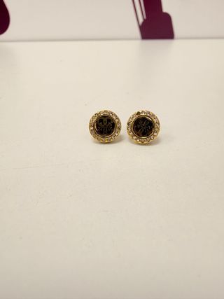 Elegantes pendientes de la marca Guess. - Diseño circular con logo. - Detalles en pedrería. - Acabado en dorado y negro. - Material: Acero inoxidable.