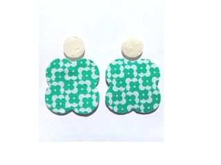 Hechos a mano por mi, cómodos y ligeros Pendientes con un diseño floral muy alegre. - Forma de trébol. - Estampado de flores blancas sobre fondo verde.
