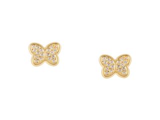 Conjunto de pendientes de plata para niños. - Diseño de mariposa. - Cierre de presión. - Detalle en color rosa.