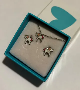 Conjunto de joyería infantil de Agatha Ruiz de la Prada con un diseño de unicornio. - Incluye pendientes y colgante. - Detalles en multicolor y plata.