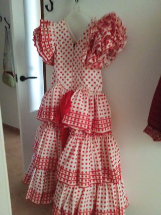 Vestido juvenil para baile de Sevillanas , con lunares rojos Regalo varios pendientes rojos