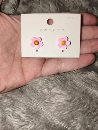 Encantadores pendientes juveniles de plata 925,aro, con flor de cerezo. Miden 1,3 cm de largo y 0,8 cm de ancho. Precio NO negociable!!