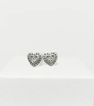 Elegantes Pendientes con forma de Corazón con su Logo. Un accesorio juvenil y brillante. - Acabado en plata S925 ale - Caja NO incluída. - Va con su saquito original 🎁 Opción de Caja Original
