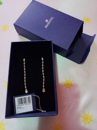 Elegantes pendientes Swarovski, sin estrenar y en su caja original. Redondos chapados en Rodio blanco Ref: 5349220 precio 25 Euro y largos Louison Blanco bano de Rodio Ref: 5409732 precio 70 Euro. - Cierre de presión seguro. - Incluye etiqueta y caja. - En ARGANDA DEL REY. - Watssap 642367342