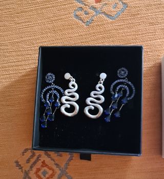 Elegantes pendientes largos con un diseño de piedras en tonos azules y joyero de viaje. Perfecto para regalo🎁 -MIRA MI PERFIL😊