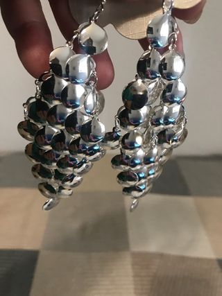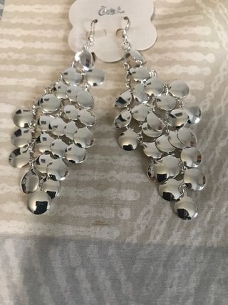 Elegantes pendientes largos, perfectos para complementar tu atuendo de fiesta. - Diseño colgante con múltiples discos. - Acabado brillante. sin estrenar con embalaje original