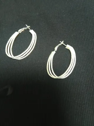 Pendientes largos con un diseño ovalado y elegante. - Diseño de triple aro. - Cierre de presión.